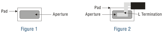 - Aperture width reductions must be taken equally from each side so that aperture is centered on the pad. (Fig. 1) Aperture lengths can be reduced by similar dimensions to reduce the potential of solder balling.